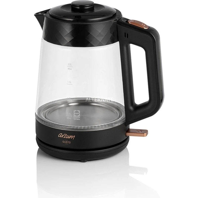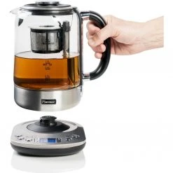 Mit dem elektrischen Teebereiter Gusto AR3101-CC lässt sich ganz einfach Tee zubereiten. Das Doppelheizsystem bringt mit einer Leistung von 1900 Watt das Wasser zum Kochen und verfügt über eine komfortable Warmhaltfunktion. Der Glas-Kessel fasst 2 Liter und kann auch nur als Wasserkocher verwendet werden. Die Glas-Teekanne hat ein Fassungsvermögen von 0,9 Litern. Das Teesieb ermöglicht die Verwendung von losem Tee.