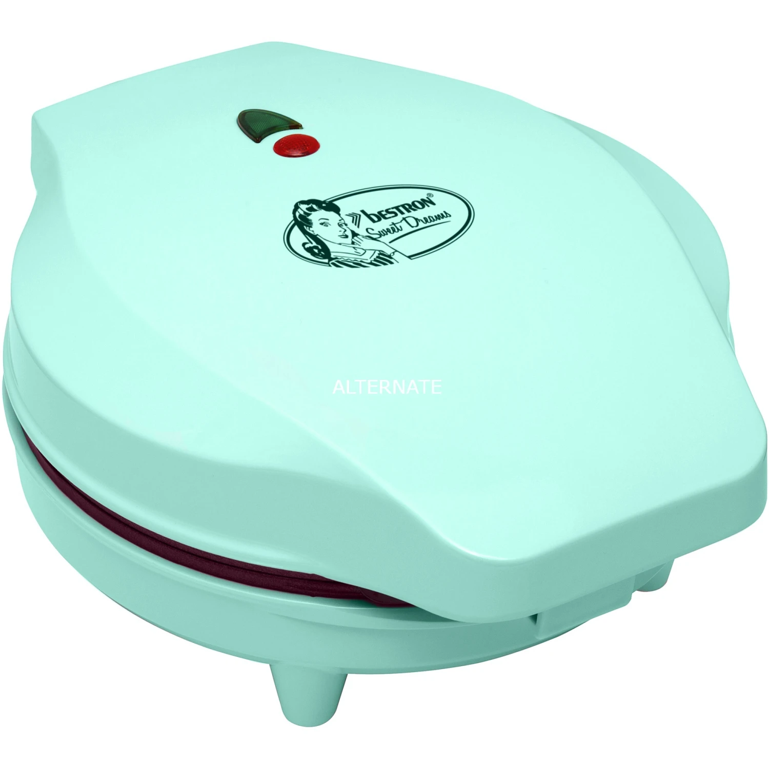 Mit dem Waffeleisen ASW217M von Bestron lassen sich herrliche Herzwaffeln zaubern. Mit der automatischen Temperaturregelung und der praktischen Kontrollleuchte für “gebrauchsfertig” und “An/Aus” sind viele Waffel-Variationen möglich. Das Gehäuse in frischem Mint ist hitzebeständig und für einen sicheren Stand sorgen die Antirutschfüße. Die Reinigung ist dank der Antihaftbeschichtung ein Kinderspiel.