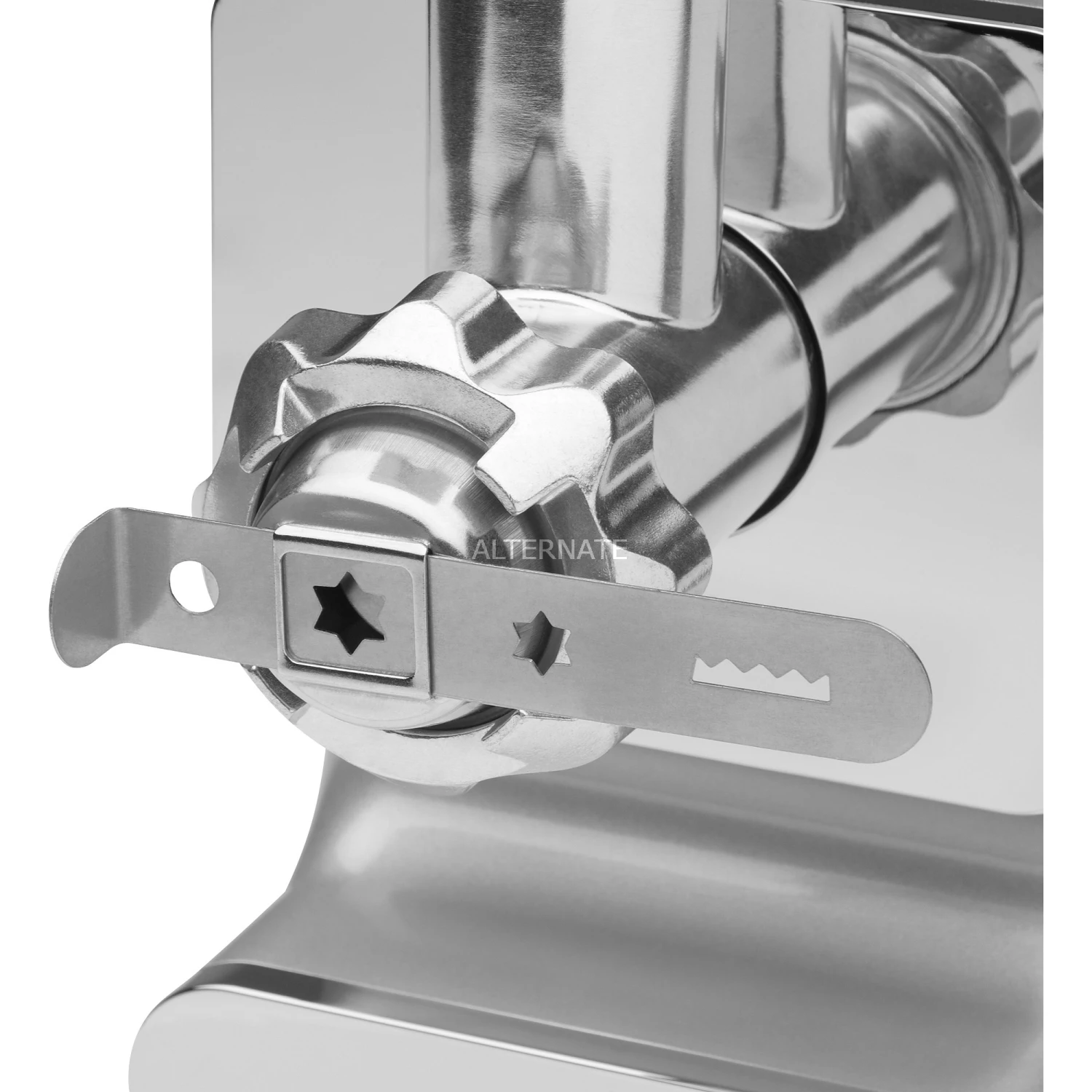 Der Bomann Fleischwolf FW 447 CB hat eine Leistung von 1200 Watt. Durch den Fleischwolf lassen sich alle Arten von Fleisch und Fisch drehen und zerkleinern. Über die Einfüllschale wird das Fleisch der Pressschnecke zugeführt. Es gibt drei verschiedene Lochscheiben (fein, mittel, grob) aus rostfreiem Stahl. Der Fleischwolf ist zur einfacheren Bedienung mit einem Ein-/Ausschalter und einer Rücklauffunktion ausgestattet.