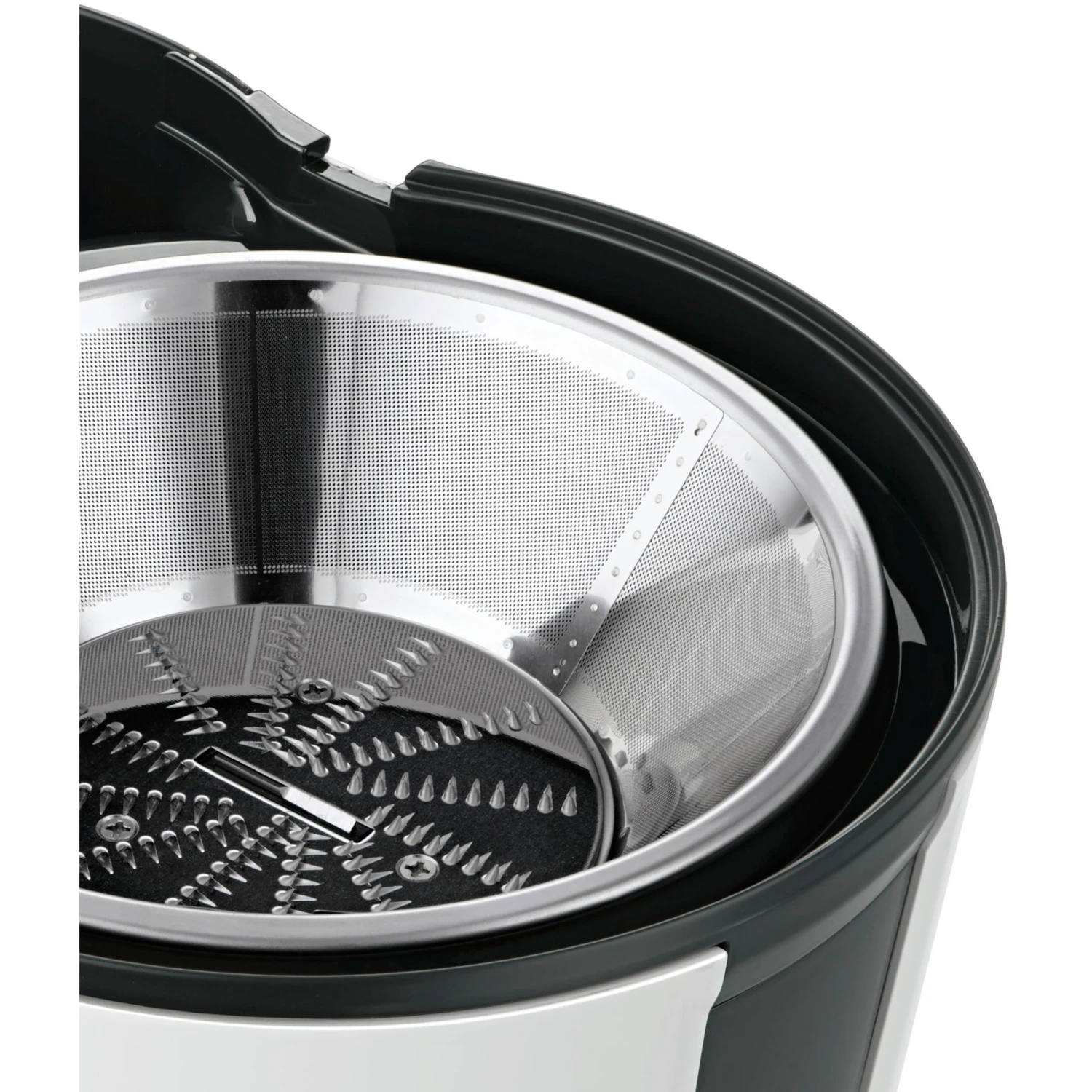 Der Bosch MES25A0 Entsafter eignet sich durch seinen großen Einfüllschacht für ganze Früchte ohne sie Vorschneiden zu müssen. Der Ausgießer hat einen Tropfstopp was ein Nachtropfen verhindert und eine saubere Arbeitsfläche ermöglicht. Der MES25A0 Entsafter besitzt zwei Schaltstufen für hartes und weiches Entsaftungsgut.