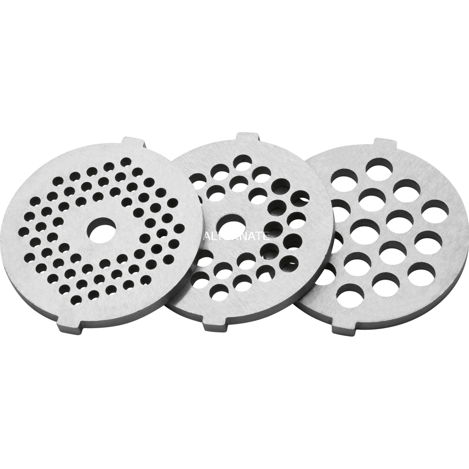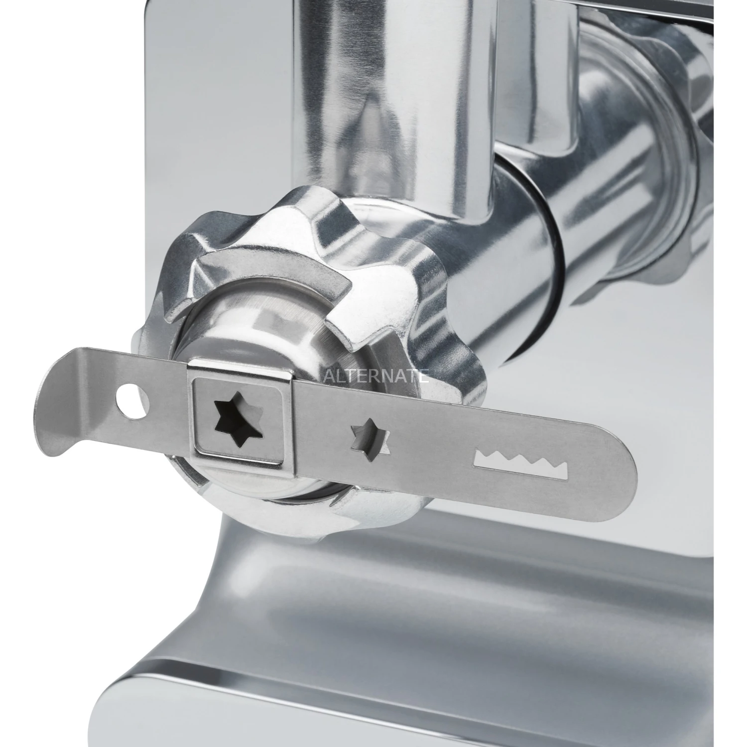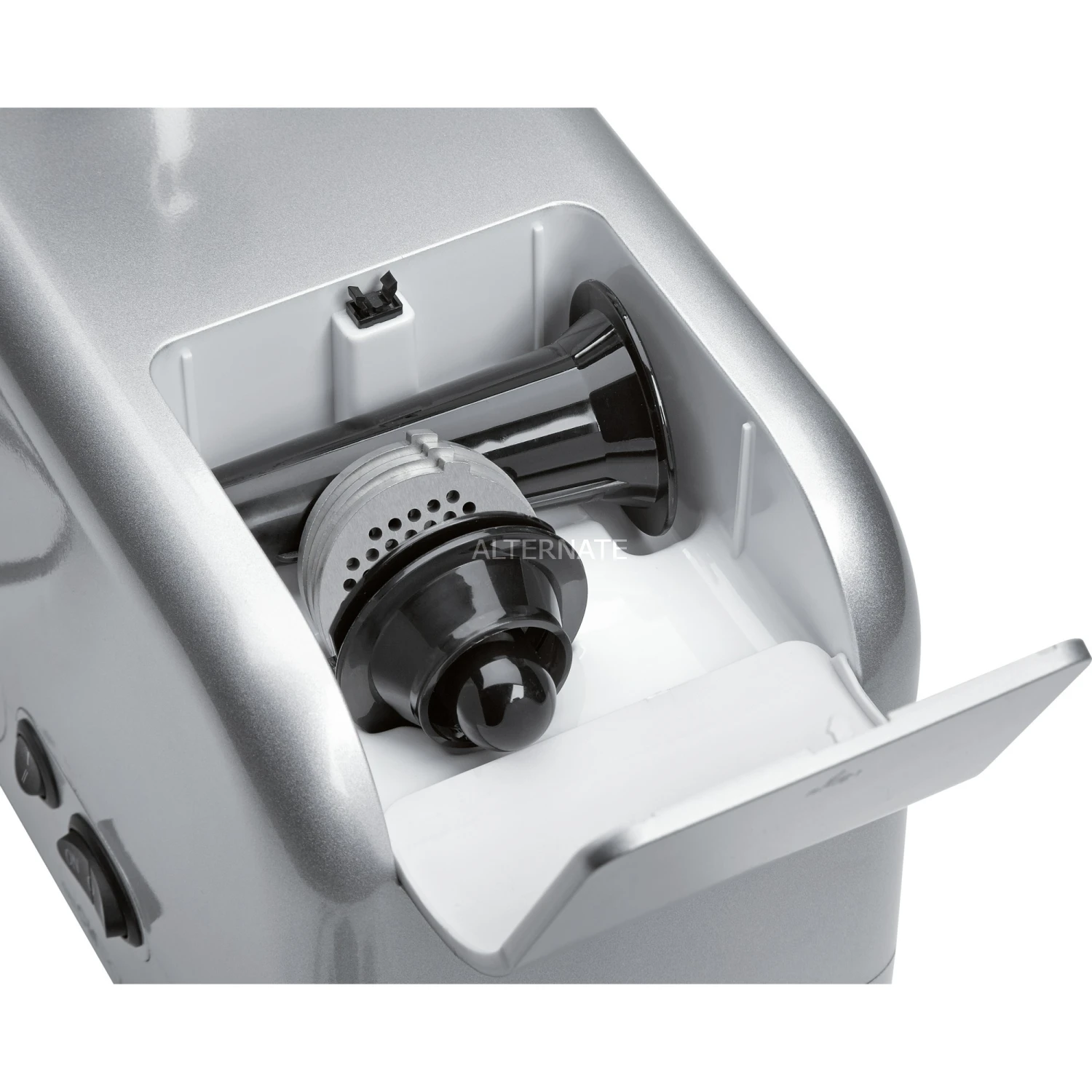 Der Clatronic Fleischwolf FW 3506 hat eine Leistung von 550 Watt. Durch den Fleischwolf lassen sich alle Arten von Fleisch und Fisch drehen und zerkleinern. Über die Einfüllschale wird, mit einem Stopfer, das Fleisch der Pressschnecke zugeführt. Es stehen drei verschiedene Lochscheiben (fein, mittel, grob) und Aufsätze für Gebäck, Kebbe und Wurst zur Verfügung. Nach der Anwendung findet das Zubehör im Aufbewahrungsfach Platz.
