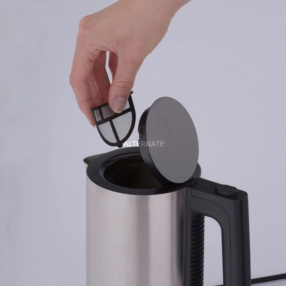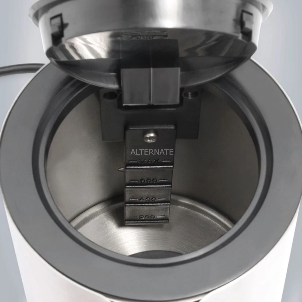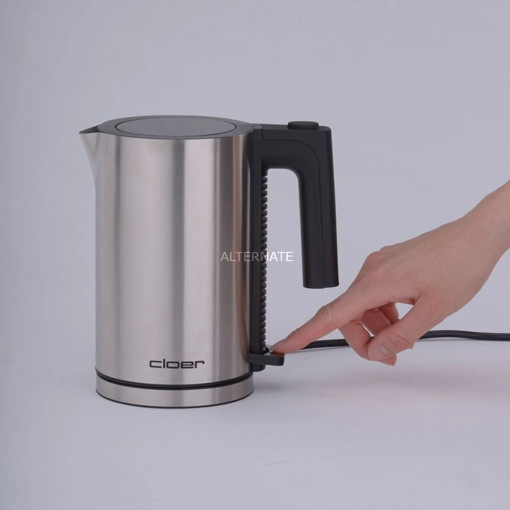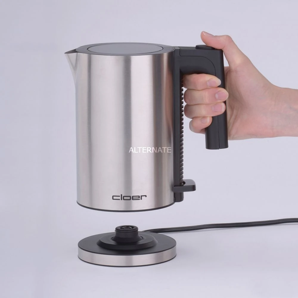 Der Mini-Wasserkocher 4990 in mattiertem Edelstahl mit innenliegender Füllmengenmarkierung fasst 0,8 Liter Wasser und bringt es mit einer Leistung von bis zu 1960 Watt in kürzester Zeit zum Kochen. Dank des 360-Grad-Anschluss-Sockel kann der Cloer 4890 in jeder Position aufgestellt und in Betrieb genommen werden. Der Deckel mit Sicherheitsverriegelung öffnet sich per Tastendruck und der entnehmbare Kalkfilter sorgt für ungetrübten Genuss. Praktisch ist zudem der Überhitzungs- und Trockengehschutz.