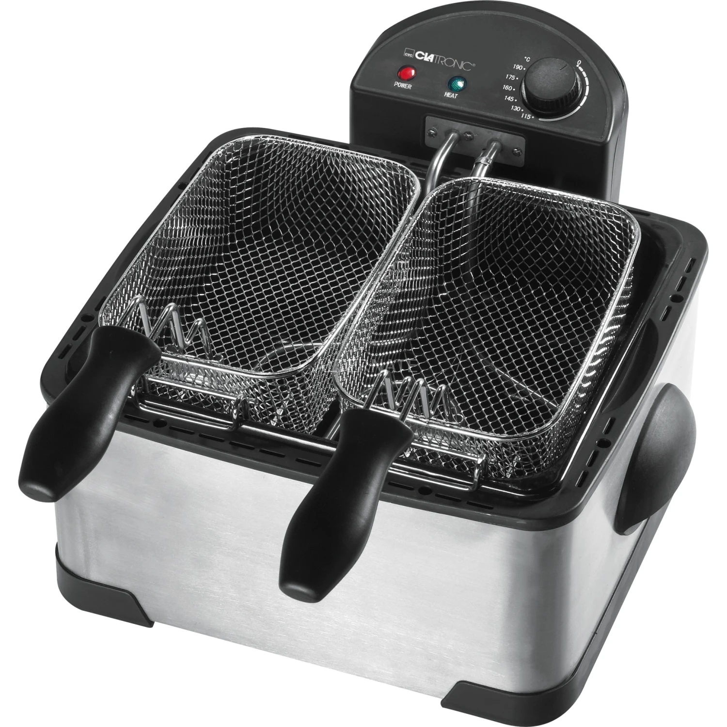 Fritteusen Mit Öl Clatronic FR 3195, Fritteuse (edelstahl/schwarz, Doppel-Kaltzone-Fritteuse)
