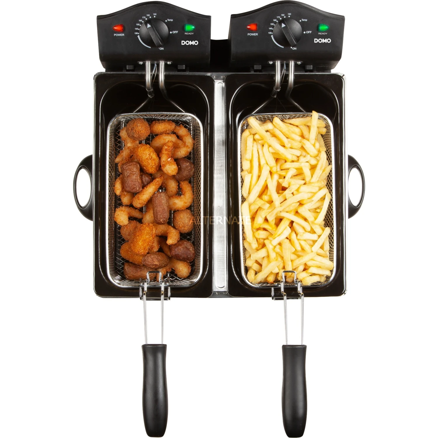 Fritteusen Mit Öl Domo DO560FR, Fritteuse (edelstahl/schwarz, Inhalt: 2 X 3L)