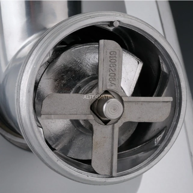Der Gastroback Fleischwolf 41408 hat eine Leistung von 600 Watt. Durch den Fleischwolfaufsatz lassen sich alle Arten von Fleisch und Fisch drehen und zerkleinern. Über eine große Einfüllschale aus Edelstahl wird das Fleisch zugeführt. Die Lochscheiben sind ebenfalls aus Edelstahl und das Schneckengehäuse, die Schnecke und der Verschlussring des Fleischwolfs 41408 sind aus Aluminium-Guss gefertigt.