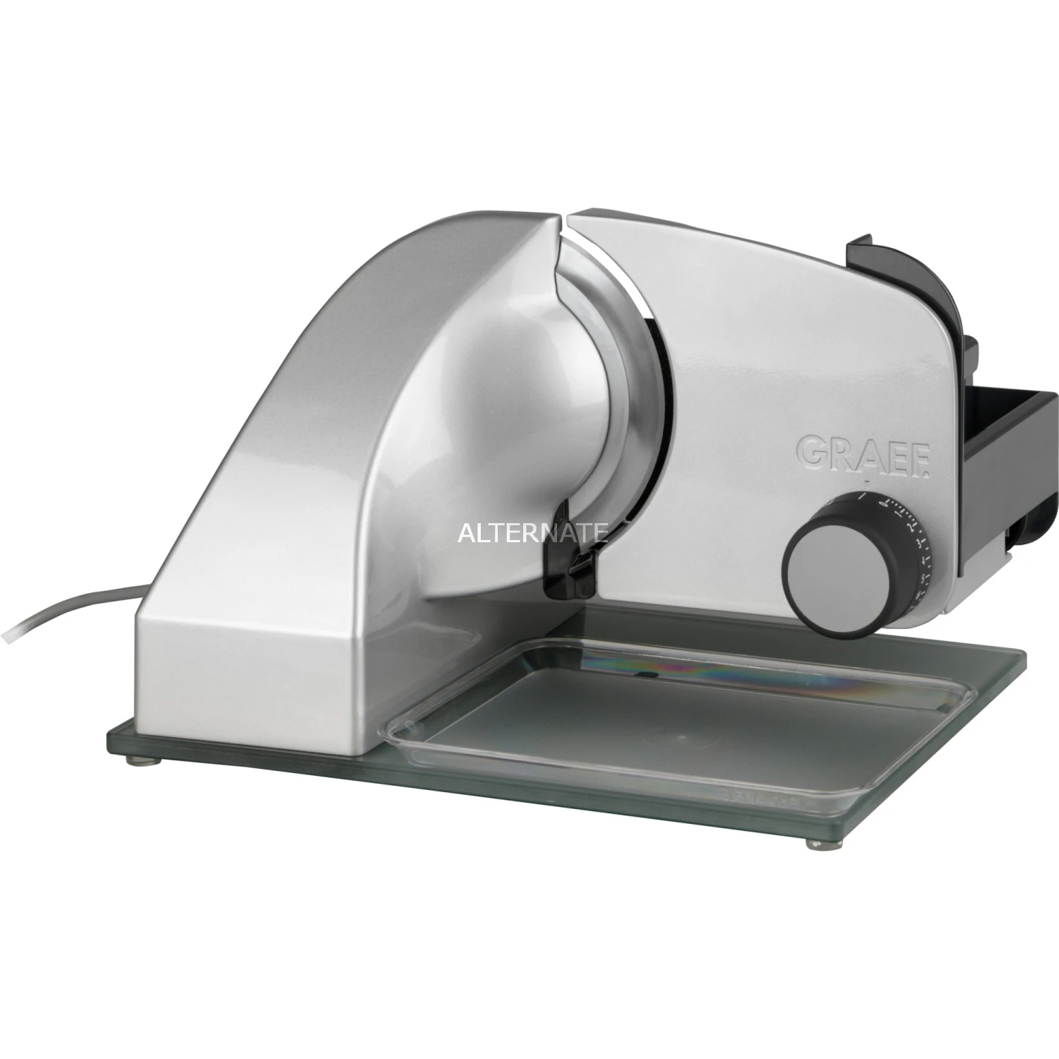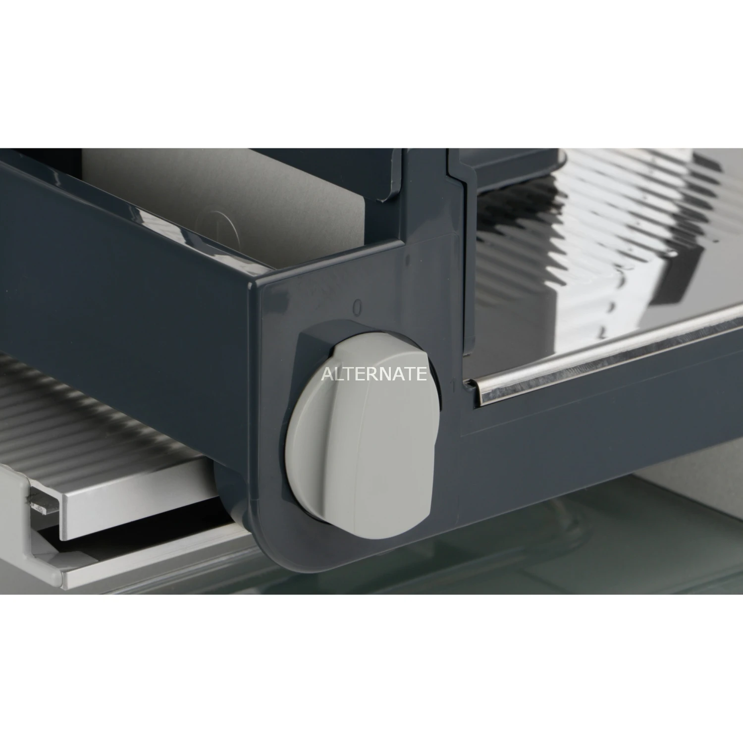 Der Allesschneider Graef Master M20 in Metallausführung ist mit einem Glattes Vollstahlmesser und einem leisen Motor ausgestattet. Die leichtgängige Schlittenführung schützt die Finger und ermöglicht sicheres Arbeiten. Die Saugfüße sorgen für einen sicheren Stand des Master M20. Damit gibt es keinen Streit mehr unter Geschwistern, wer denn nun die dickere Scheibe Käse haben darf.