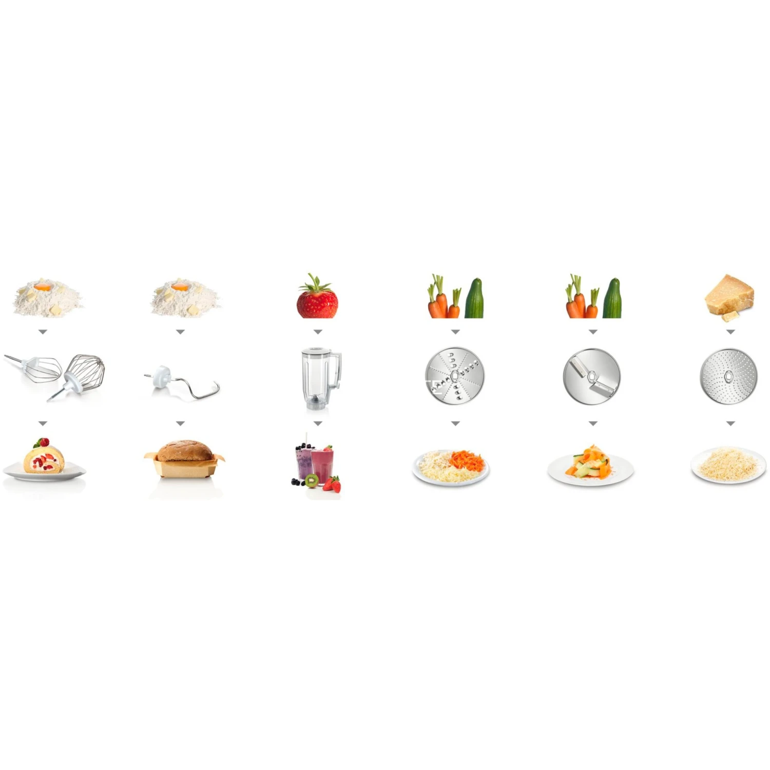 | Verwendung | Aufschlagen, Rühren, Kneten, Mixen, Raspeln, Reiben, Schnitzeln, Zerkleinern |