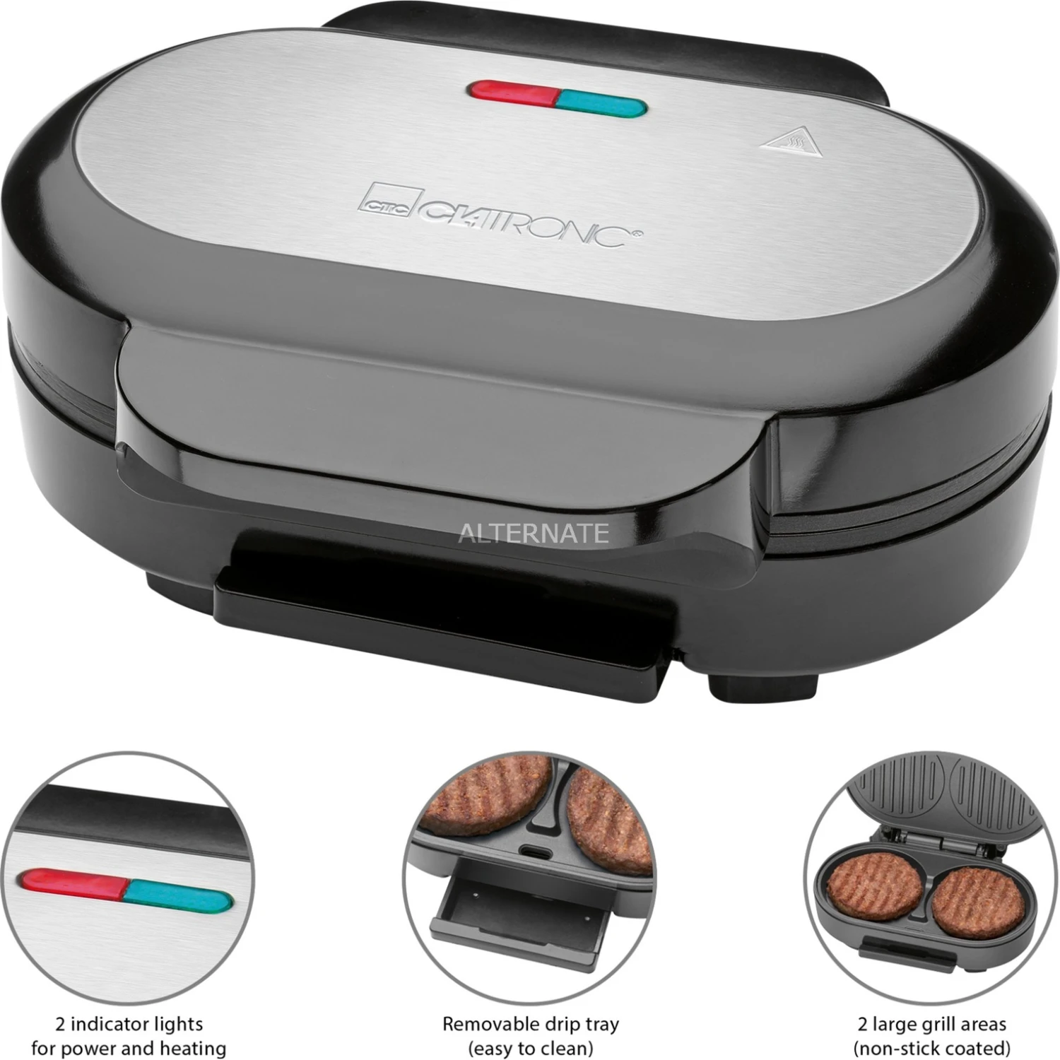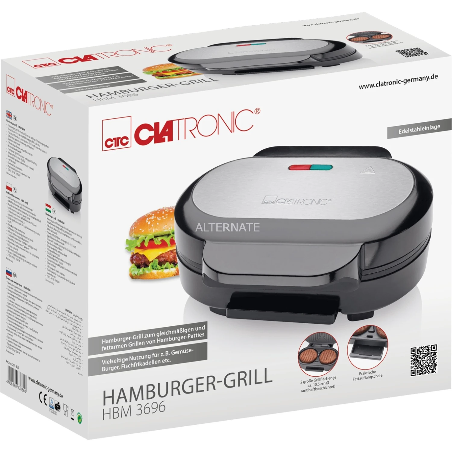 Kontaktgrills Clatronic Hamburger-Grill HBM 3696, Kontaktgrill (edelstahl/schwarz, 1.000 Watt)