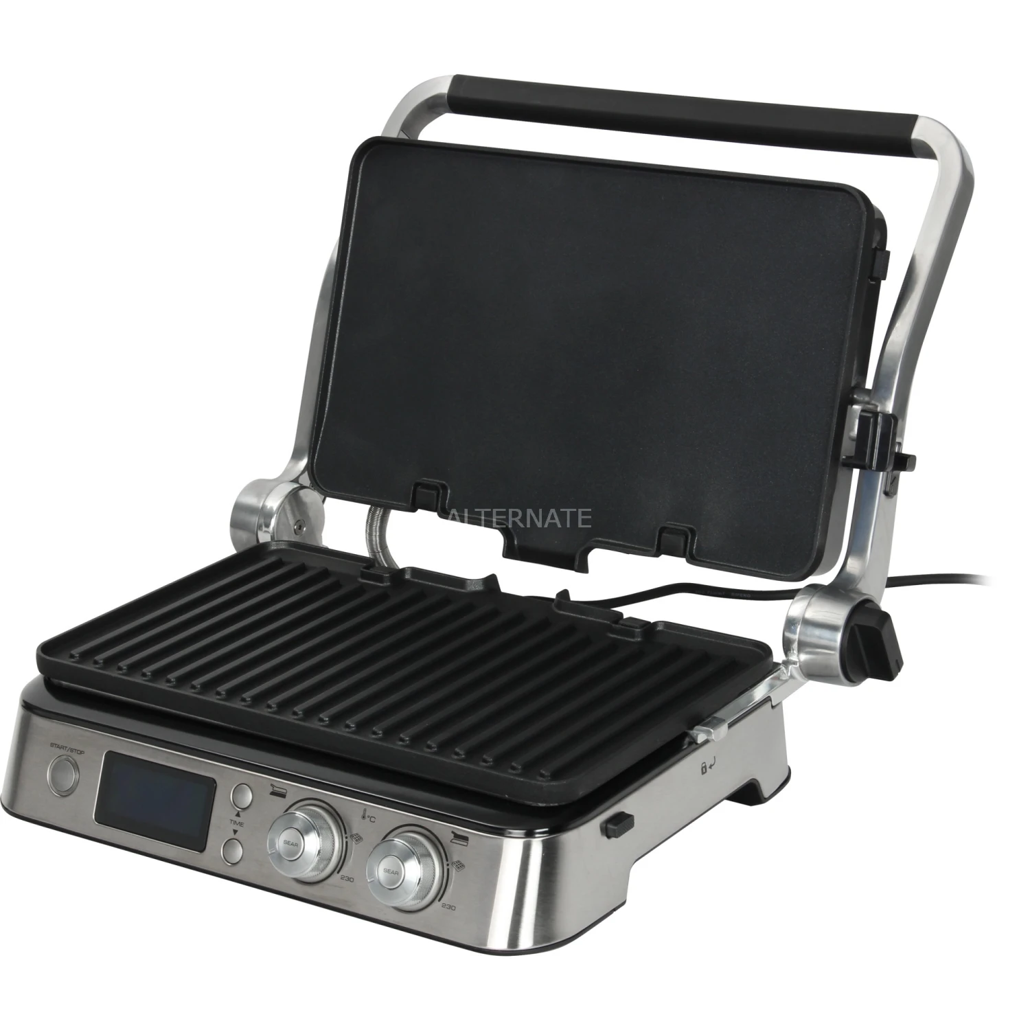 | Weitere Informationen | Die, abnehmbaren, Grillplatten, (geriffelt, und, glatt), können, gegeneinander, ausgetauscht, werden, obere, Grillplatte, kann, der, Dicke, des, Grillguts, angepasst, werden |