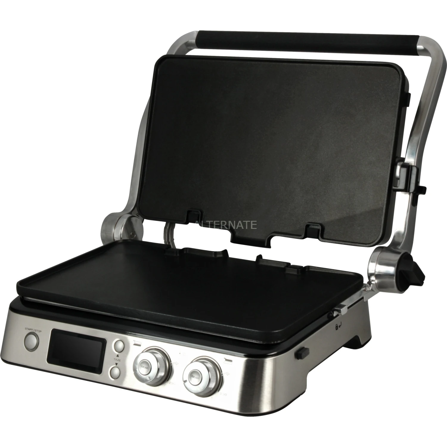 Der MultiGrill CGH 1020D von De’Longhi ist ein hochwertiger Elektro-Grill und ermöglicht dank durchdachter Funktionen und hoher Leistung perfekte Ergebnisse. Mit 2 Grillplattensets, die beide mit einem eingebetteten Heizelement ausgestattet sind, kann so gut wie jedes Lebensmittel optimal zubereitet werden, durch hohe Präzision sogar bei höchsten Temperaturen. Dank einem einfachen, integrierten Mechanismus lässt sich zwischen den Zubereitungsvarianten umschalten, sodass der Grill immer passend zu dem gewünschten Gericht eingestellt werden kann: Kontaktgrill, Tischgrill (aufgeklappt), Gratin Grill (eingerastet). Der MultiGrill ist mit einer elektrischen Temperaturregelung ausgestattet, die eine sehr präzise und konstante Wärmeverteilung über die gesamte Fläche ermöglicht. Zwei Thermostate regeln die Temperatur der oberen und unteren Grillplatte unabhängig voneinander. Die „Sear“-Funktion eignet sich perfekt zum scharfen Anbraten: das Fleisch wird optimal versiegelt und bleibt so innen zart und saftig. Mit dem integrierten Timer lässt sich die Garzeit minutengenau einstellen. Mit dem MultiGrill CGH 1020D gelingen Fleisch und Fisch, Gemüse und Käse, Sandwiches und andere Leckereien einfach perfekt.