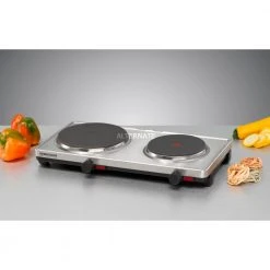 Die Glaskeramik-Doppelkochplatte 303021 von Princess mit zwei Platten (16 cm und 19 cm Durchmesser) ist einfach zu bedienen. Durch das elegante, kompakte Design passt die Kochplatte in jede Umgebung. Ausgestattet mit zwei Thermostaten, kann die bevorzugte Temperatur für jedes Gericht ausgewählt werden. Für einen sicheren Gebrauch sorgen die Kontrollleuchte, rutschfeste Füße sowie der Überhitzungsschutz.
