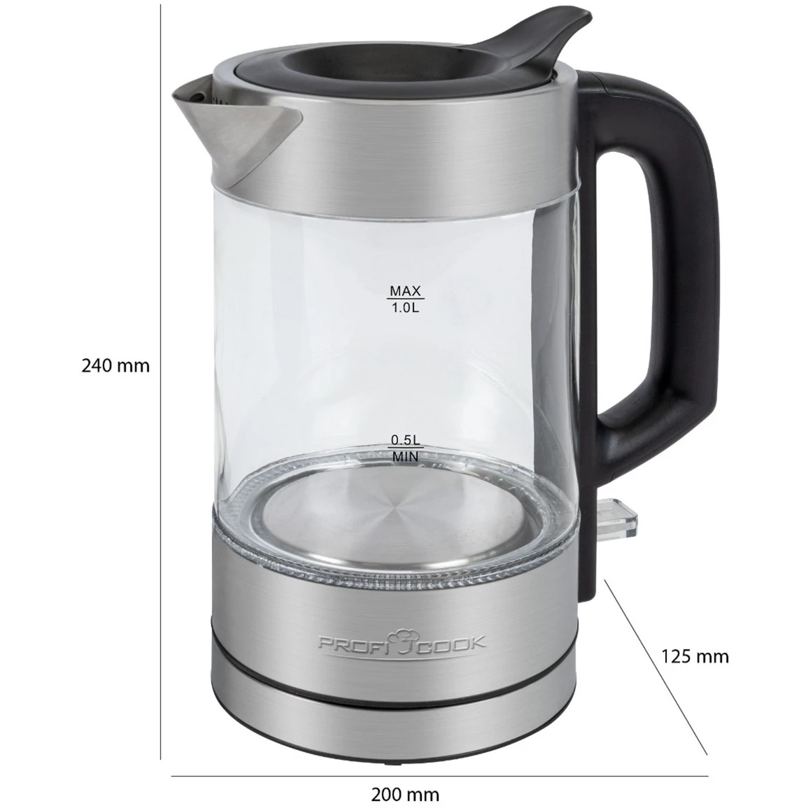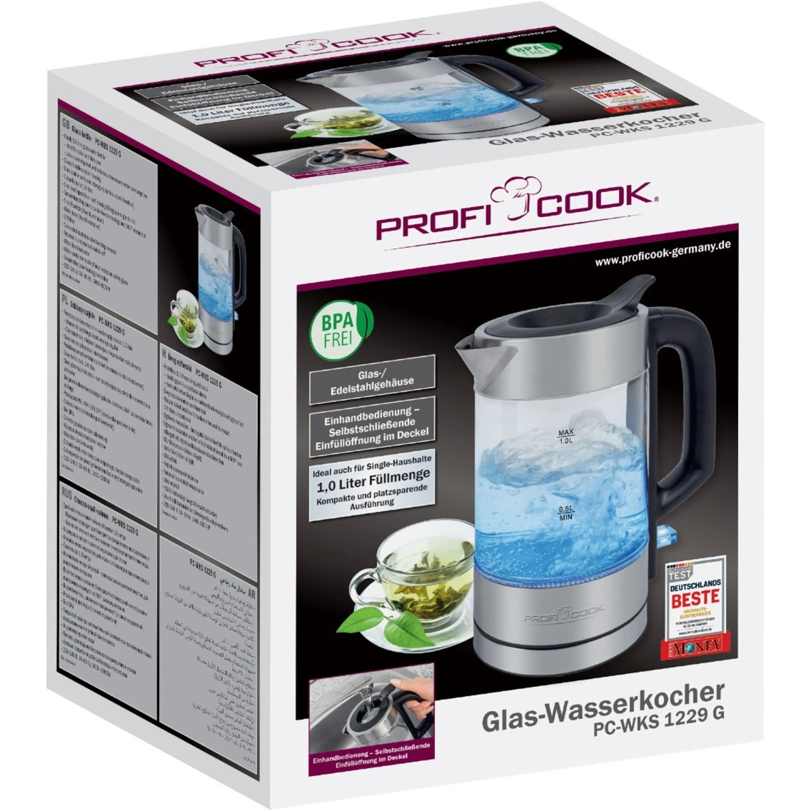 ProfiCook Glas-Wasserkocher PC-WKS 1229 G (edelstahl/schwarz, 1 Liter)