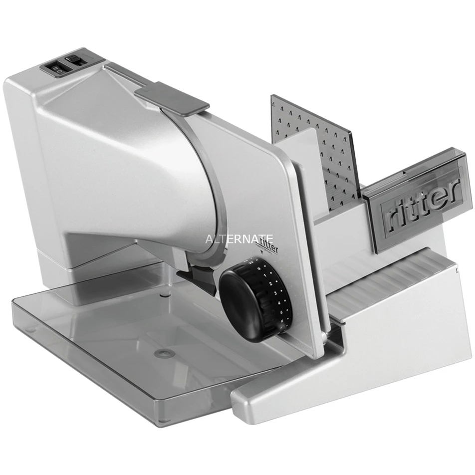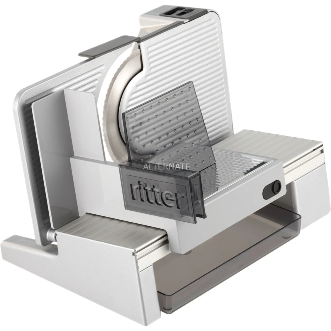 Das Gerät ist mit einem 17 cm Ø Wellenschliffmesser ausgestattet, das großflächig abgedeckt ist und wird mit einem 130 Watt starken Gleichstrommotor leise angetrieben. Für Sicherheit sorgt der Dauer- und Momentschalter und für besondere Bequemlichkeit der großflächige und abnehmbare Leichtlaufschlitten mit Edelstahlauflage, der das Schneiden ohne großen Kraftaufwand ermöglicht. Mit der Varioelektronik kann die Messerdrehzahl dem jeweiligen Schneidgut angepasst und damit ein optimales Schneidergebnis erzielt werden.