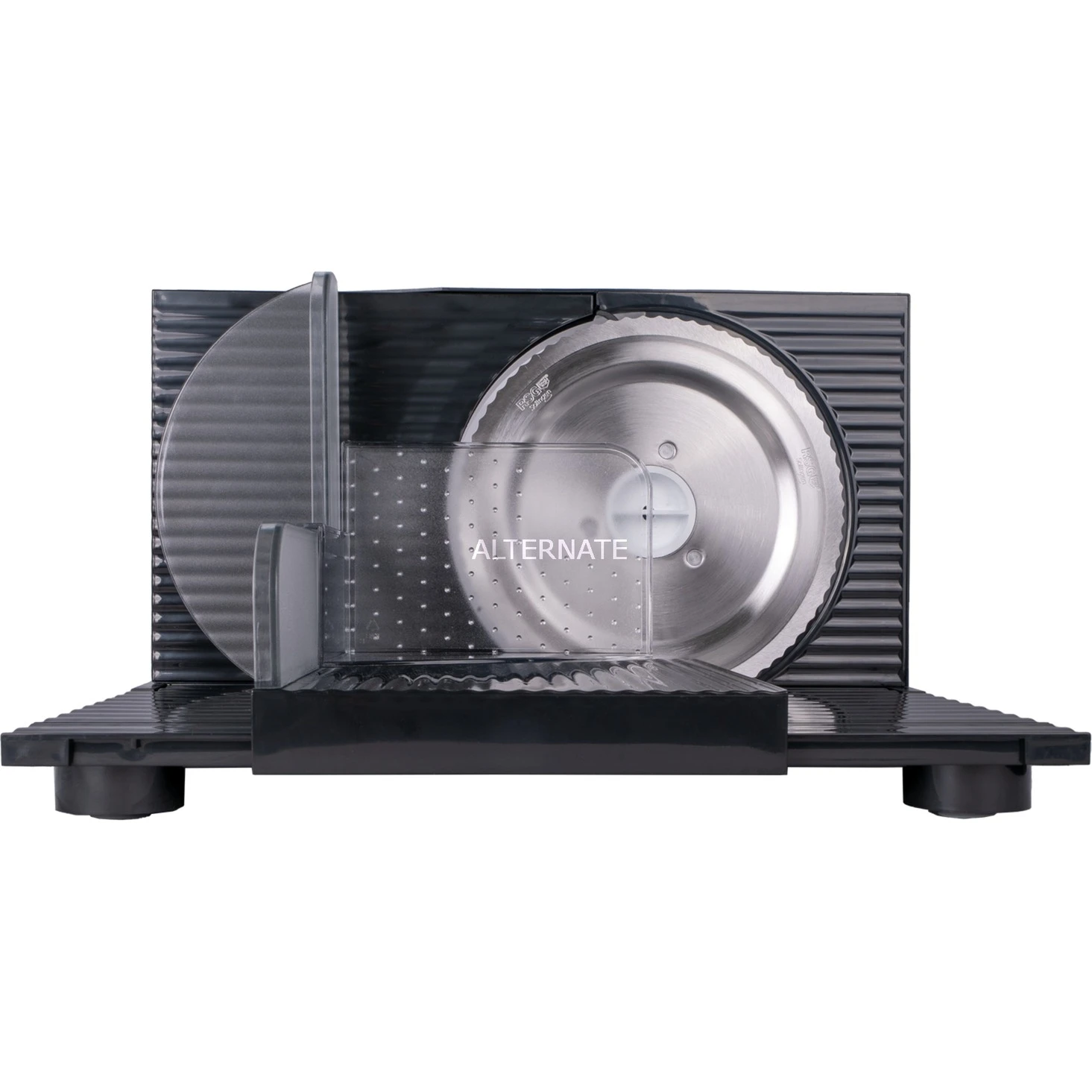 Der Allesschneider AS 100 verfügt über ein hochwertiges Edelstahlmesser mit Wellenschliff. Die Schnittstärke ist zwischen 0 bis 17 mm eingestellbar. Der Schlittenweg ist 16 cm lang und der leichtgängige Schlitten ist mit Handschutz und Lebensmittelhalter ausgestattet. Für weitere Sicherheit sorgt der doppelter Sicherheitsschalter. Abnehmbare Teile erleichtern die Reinigung.