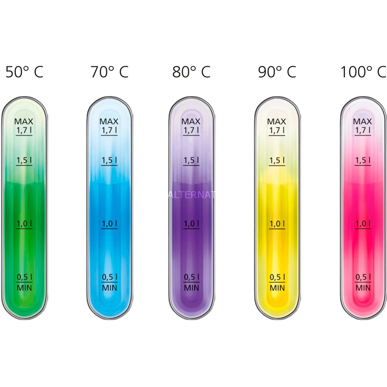 | Feature | Temperatur, einstellbar:, 50, 70, 80, 90, 100°, C, mit, farbiger, Temperaturanzeige |